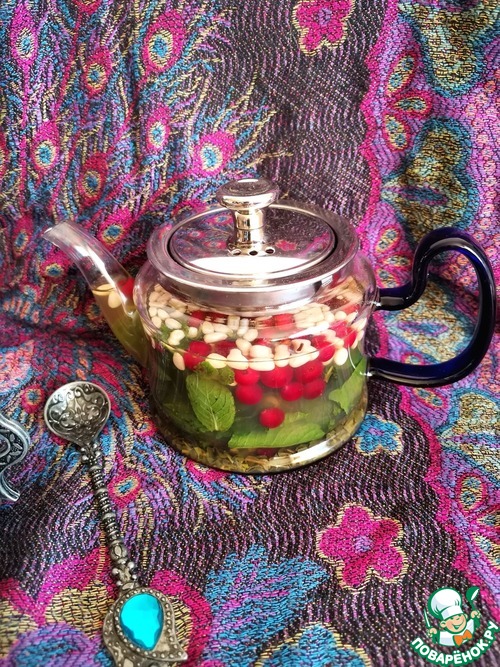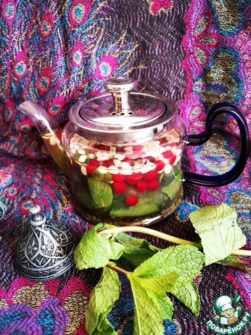 Рецепт «Зелёный чай с мятой и кедровыми орешками»:
