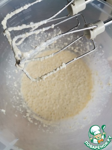 Приготовим тесто. Взобьем масло комнатной температуры в пышную массу, добавим яйца, сметану, соль и перец. Все тщательно перемешаем.