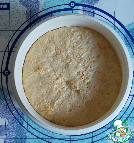 Убрать в тёплое место для подъёма, я отправила в разогретую до 30 градусов духовку. -
