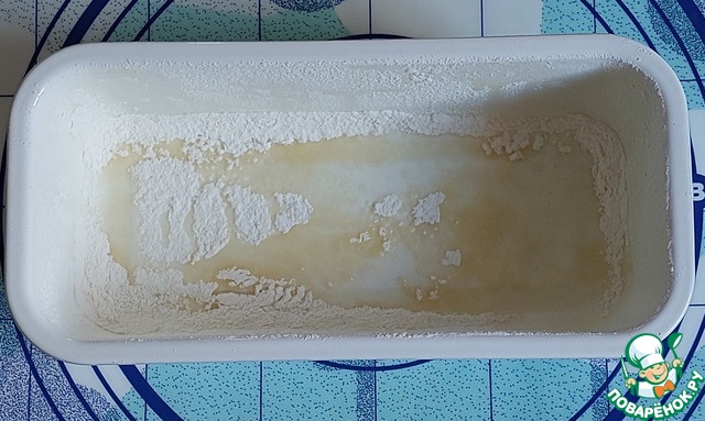 Форму смазать растительным маслом и присыпать мукой. Можно застелить бумагой для выпечки. Размер моей формы 23 × 11.