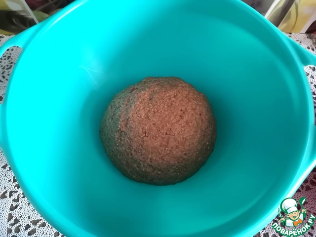 • Хорошо вымесить тесто, скатать в колобок, накрыть чашу полотенцем или пищевой плёнкой и убрать в тёплое место ~на 1 час.