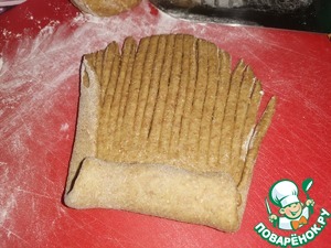 • Затем, подвернув края, скатать лепёшку в рулет.