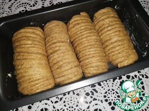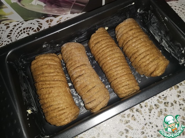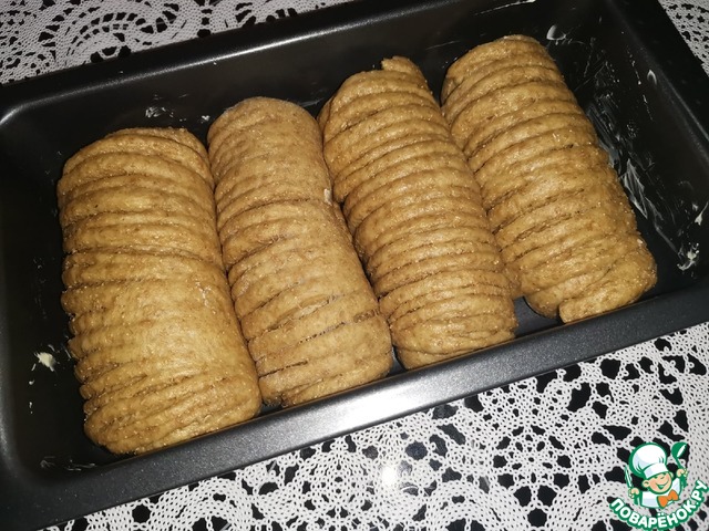• Уложить рулетики в смазанную маслом форму и оставить на ~20 минут до увеличения батончиков в объёме.