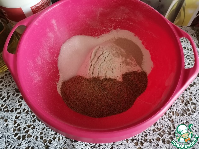 Отдельно смешать-взболтать яйцо, растительное масло, молоко и кофе.