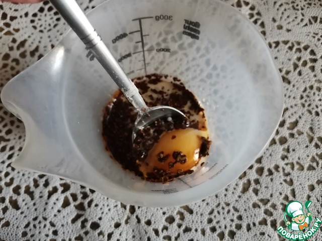 • Отдельно смешать-взболтать яйцо, растительное масло, молоко и кофе.