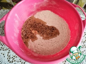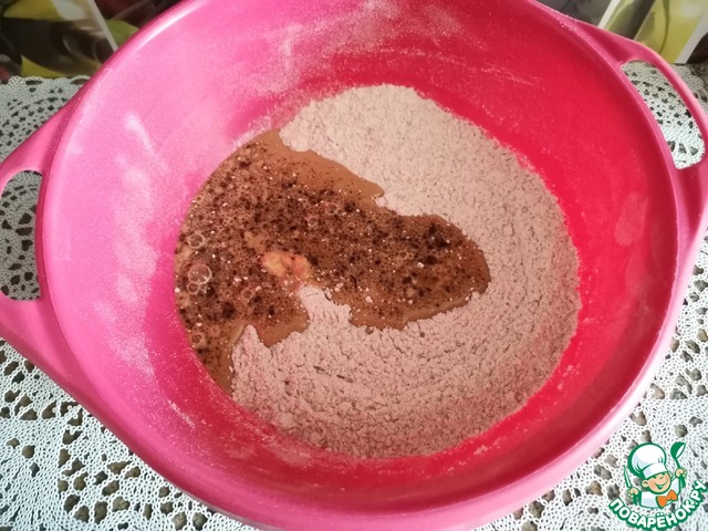 • Соединить обе смеси и замесить тесто. Тесто немного липкое, старайтесь не забивать мукой.