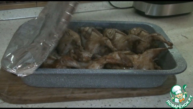 После этого снимаем фольгу и отправляем ещё перепелов зарумяниться на 10-15 минут.