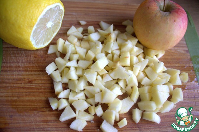 Яблоко нарезать мелко, сбрызнуть лимоном.