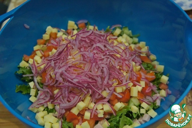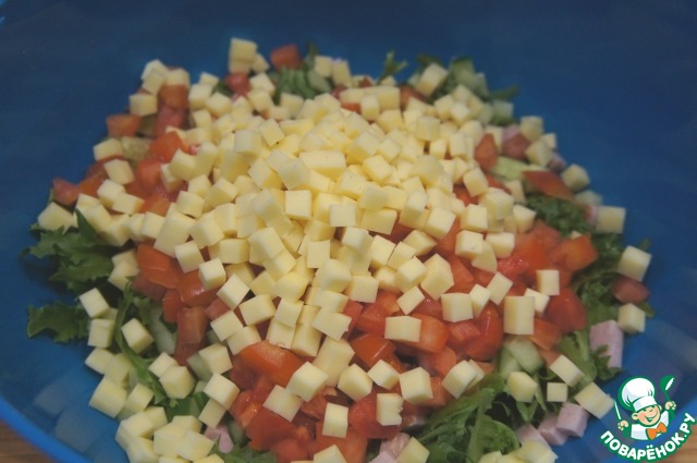 Салат из овощей с карбонатом и сыром