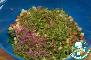 Туда же всыпать мелко нашинкованную зелень.