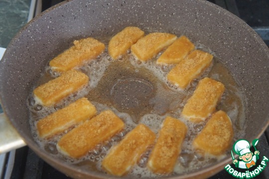 Быстро обжарить в растительном масле до легкого красивого золотистого цвета.