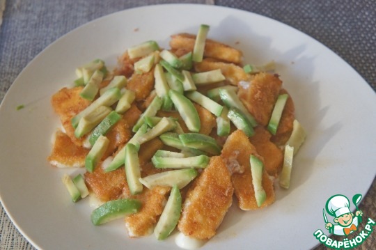 У меня соус-крем оказался жидковат и красивых полосок не получилось, он впитался в салат.