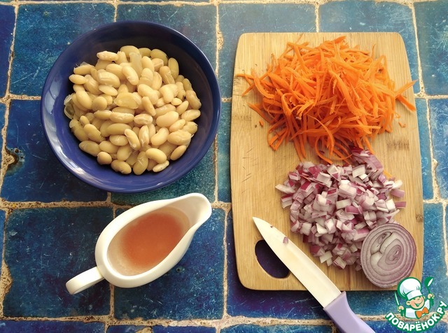 Лёгкий питательный витаминный салат с отварной белой фасолью и свежей морковью, заправленный пикантной заправкой. Подойдёт в "роли" салата, самостоятельного блюда, а так же и гарнира.