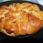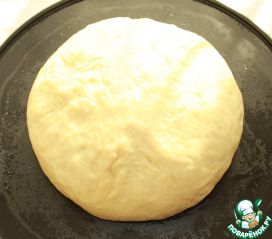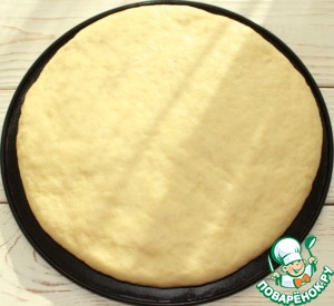 Подкатать тесто в шар и переложить на противень смазанный маслом (у меня разъемная форма 26 см.).
