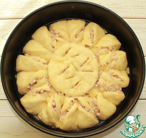 Рецепт «Дрожжевой пирог с ветчиной и сыром»: