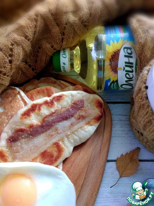 Дожариваем до готовности. Бекон поджарится, зарумянится вместе с краями теста, пропитается оладушек растопленным салом. ММММММММММ... очень вкусно!