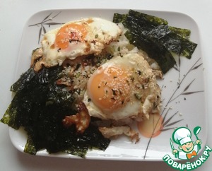 Затем жидкий желток мешают с рисом и водорослями и едят с удовольствием)))