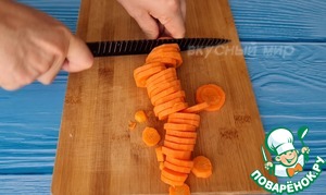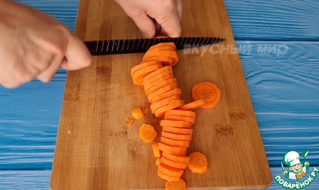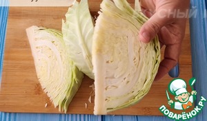 Нарезаем все овощи: капусту нарезаем на дольки, не срезая кочерыжку.