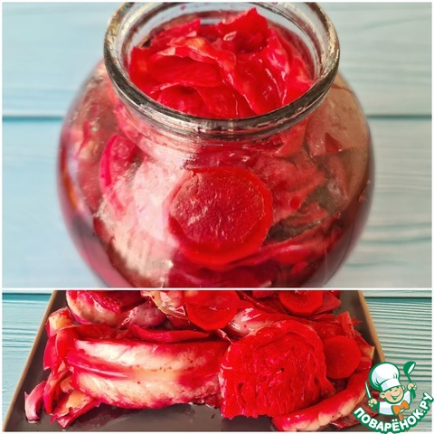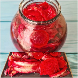 Маринованная капуста со свеклой – замечательный рецепт! Конечно, она не так популярна, как огурцы и помидоры, но ее яркие хрустящие листья в кисловатом маринаде тоже не затеряются на столе. Капусту хорошо подавать в качестве закуски, использовать для салатов – для того же винегрета, например, или подать с вареной картошкой и мясом.