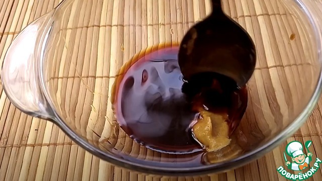 Соединяем горчицу и соевый соус, убираем в сторону.