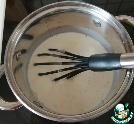 Поставить на огонь и при постоянном помешивании дать закипеть.