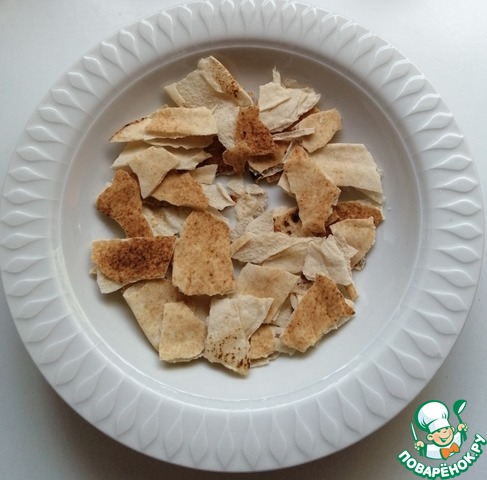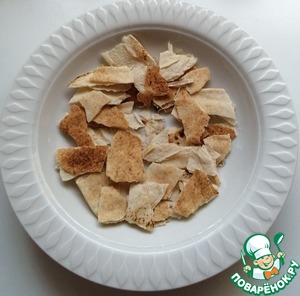 На дно тарелки ломают сухой лаваш. Его специально сушат. -