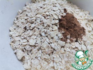 Затем добавить овсяные хлопья и корицу. Хорошо перемешать.