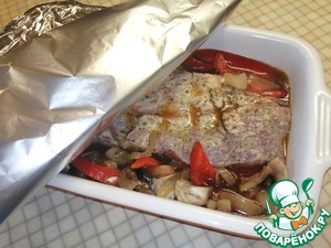 Налить пиво к рёбрышкам с овощами и накрыть фольгой.