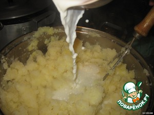 Стандартное пюре с молоком (горячим)+яйцо+немного соуса (который приготовили).