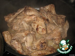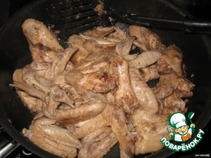 В процессе поджаривания добавила жидкость, в которой крылья мариновались, и потушила слегка.