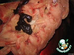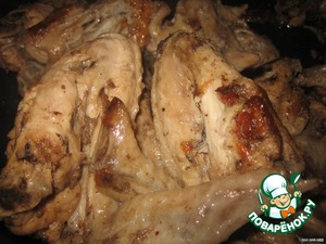 У меня мороженые, поэтому я кинула туда все приправы и вылила вино (примерно стакан). И оставила оттаиваться и, заодно, мариноваться.