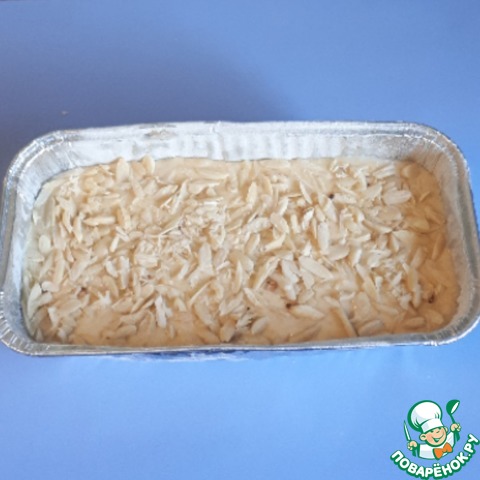 Сверху на тесто я посыпала очищенный рубленный миндаль.