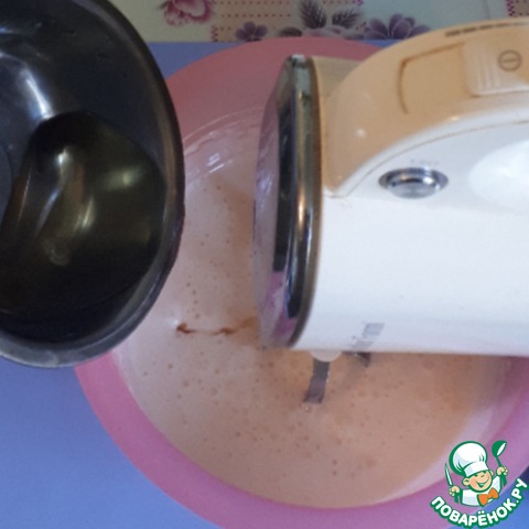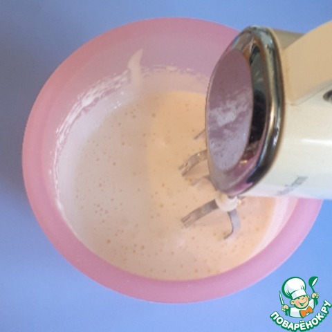 Яйца взбить с сахаром до пышной белой массы.