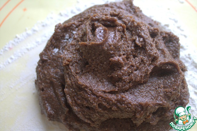 Перенести на слой муки липкое тесто.