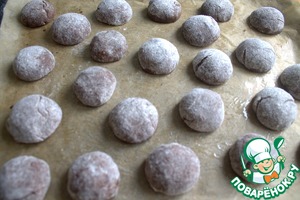Скатать в руках шарик и перенести на противень с пергаментом. У меня многоразовый коврик.