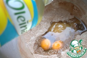 Влить растительное масло "Олейна", добавить яйца и мёд.