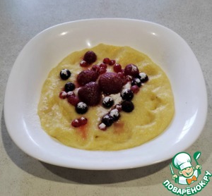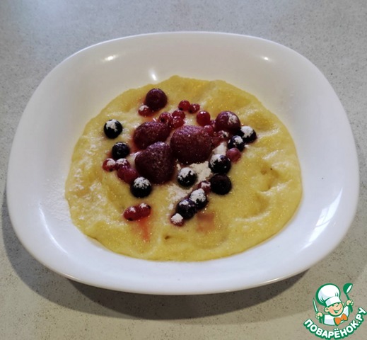 Подаем готовую поленту с ягодами, сверху можно посыпать сахарной пудрой. Часто готовлю этот рецепт для всей семьи, дети обожают.