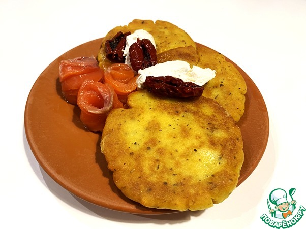 Подаем с любимой начинкой: сладкой или соленой. Лепешки из поленты – полезная замена хлебу. Приятного аппетита!