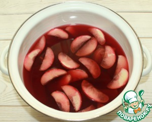 • Затем добавить вымытые яблоки, нарезанные на произвольные кусочки без сердцевины и варить с момента закипания еще минуты 3, снять с огня.