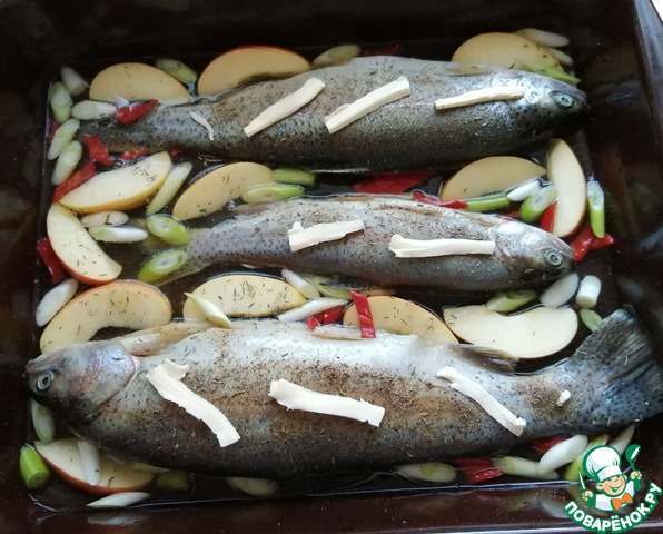 Очень вкусная запечённая форель. Вместо сидра, если его нет, можно использовать яблочный сок.