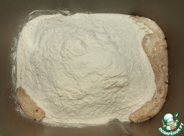 Все ингредиенты сложить в ведерко ХП согласно инструкции. Режим – Основной, корочка – Средняя, вес - 750 гр.