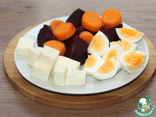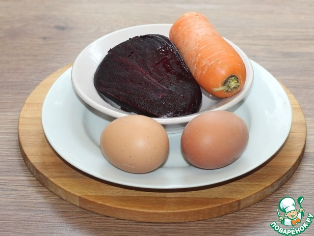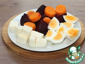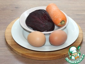 2. Отвариваем морковь, свеклу и куриные яйца, охлаждаем и очищаем.