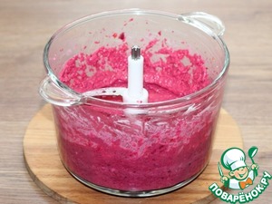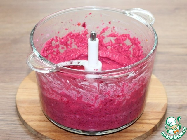 8. Добавляем сливки и измельчаем до однородности. У меня сливки "Для соуса", очень густые. Если простые 20-33% сливки, то предварительно их взбиваем, а затем добавляем.