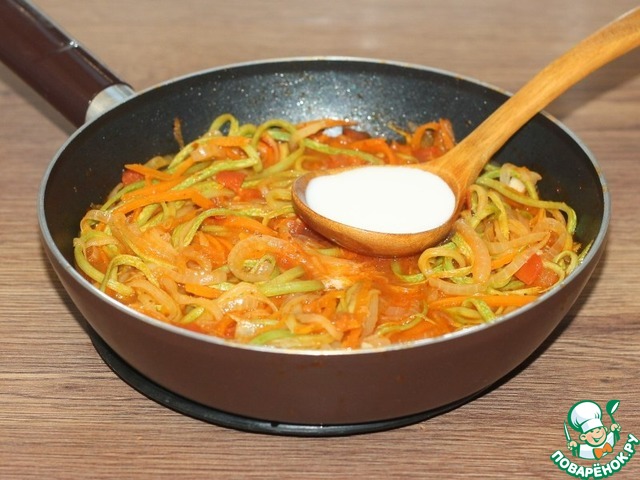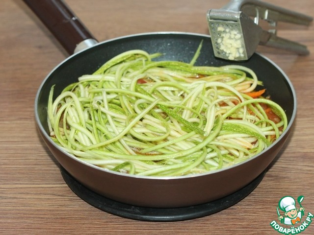 • 8. Добавляем кабачок, прессованный чеснок,...