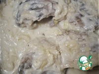 - Карась (очищенный, нарезанный на порционные куски, у меня 4 кусочка, можно вместо карася взять карпа) — 500 г