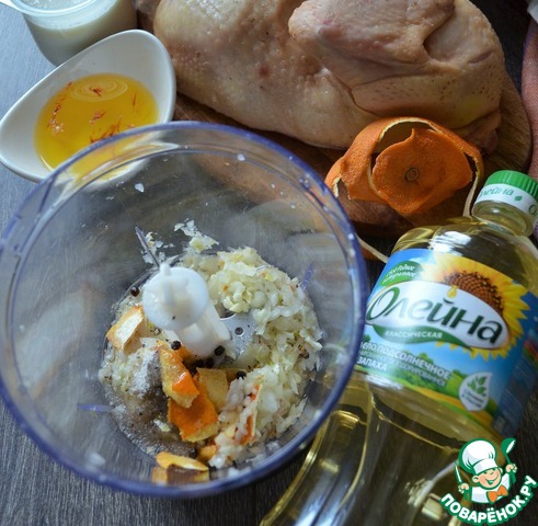 Маринад удвоила. Готовила в маринаде,мне тоже как-то жалко было выкинуть его. И шафран заменила на куркуму. Настоящего шафрана в магазинах нет...