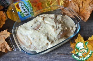 Добавить йогурт, сметану, аккуратно вмешать, проверить на соль, маринад должен быть чуть солёным. Можно что-то одно - сметану или йогурт.