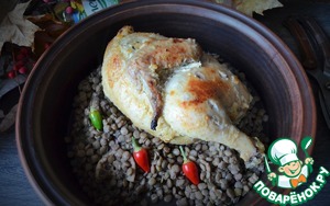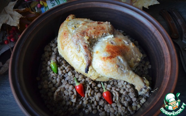 Затем вновь перевернуть, подержать 7-10 минут при 200-220 градусах, до желаемой румяности. Подать с гарниром, например, с чечевицей.