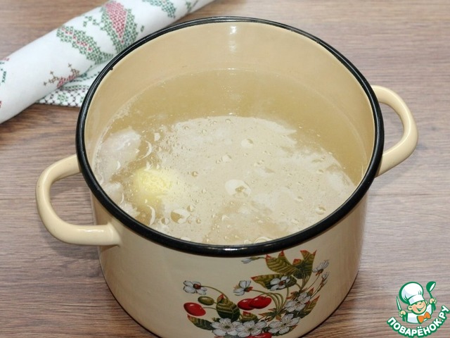 • 7. Сваренный картофель измельчаем и возвращаем в кастрюлю. Добавляем приправу и варим суп на небольшом огне.
