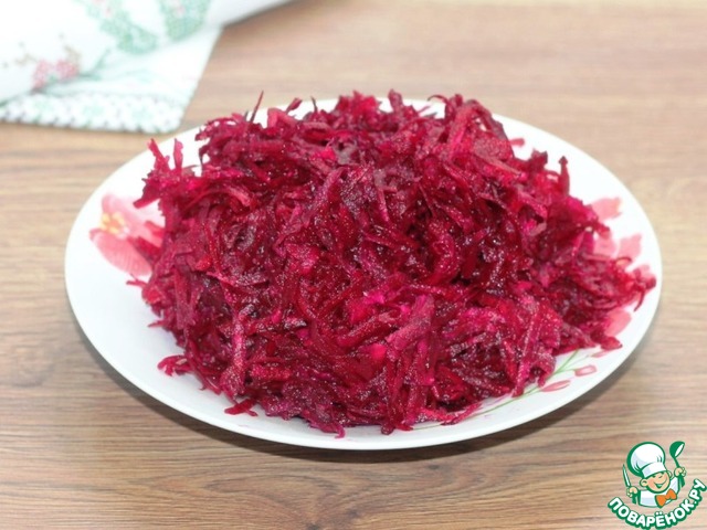 • 3. Очищенную от шкурки свеклу натираем на крупной терке...